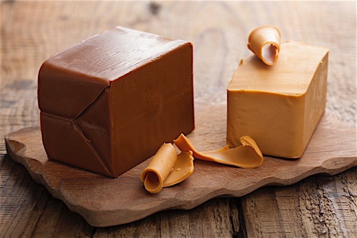 4. Ski Queen Gjetost. It’s almost better to close your eyes and try out this cheese, as it’s brown color really makes you think you are eating caramel.  While Gjetost does have a bit of a caramelly flavor, the flavor of goat cheese is also present.  Gjetost pairs perfectly with a tart apple.  Our favorite pairing is the Granny Smith and Pink Lady.