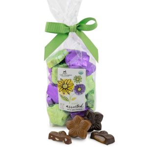 What’s better than a bouquet of cheerful spring flowers chasing away a cold, dark winter? A batch of chocolate flowers, of course! Made fresh in Vermont and delivered straight to your door, our gourmet chocolate flowers are individually wrapped in colorful spring foils, packaged in a gift bag tied with green ribbon. A delicious gift for any occasion, these chocolates are also right at home in your candy dish!