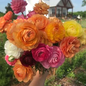 2. The second way most people buy flowers for their loved ones for Valentine’s Day is through a florist shop. Usually, a beautiful arrangement of anything is requested but here is a tip of the second most requested flower in my poll. The ranunculus! You may have never heard of it before but in the cut flower growing world, we know it as the rose of the spring. It resembles a rose and lasts weeks in a vase. You absolutely cannot go wrong asking for ranunculus in your beautiful arrangement to replace the standard rose.